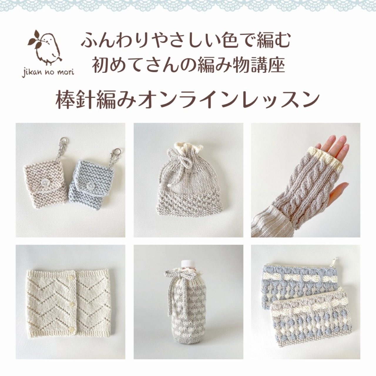 オンライン棒針編み講座 グレー系